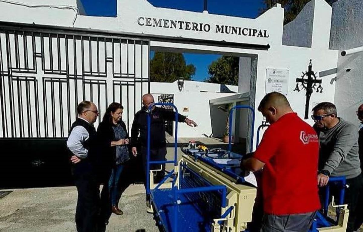 El Ayuntamiento de Almuñécar ha adquirido un elevador para el Cementerio Municipal; una herramienta hidráulica que permite elevar con facilidad féretros a los nichos más altos e incrementar la seguridad de los trabajos que lo requieran en el camposanto, según ha manifestado la edil del Área, Marïa del Carmen Reinoso