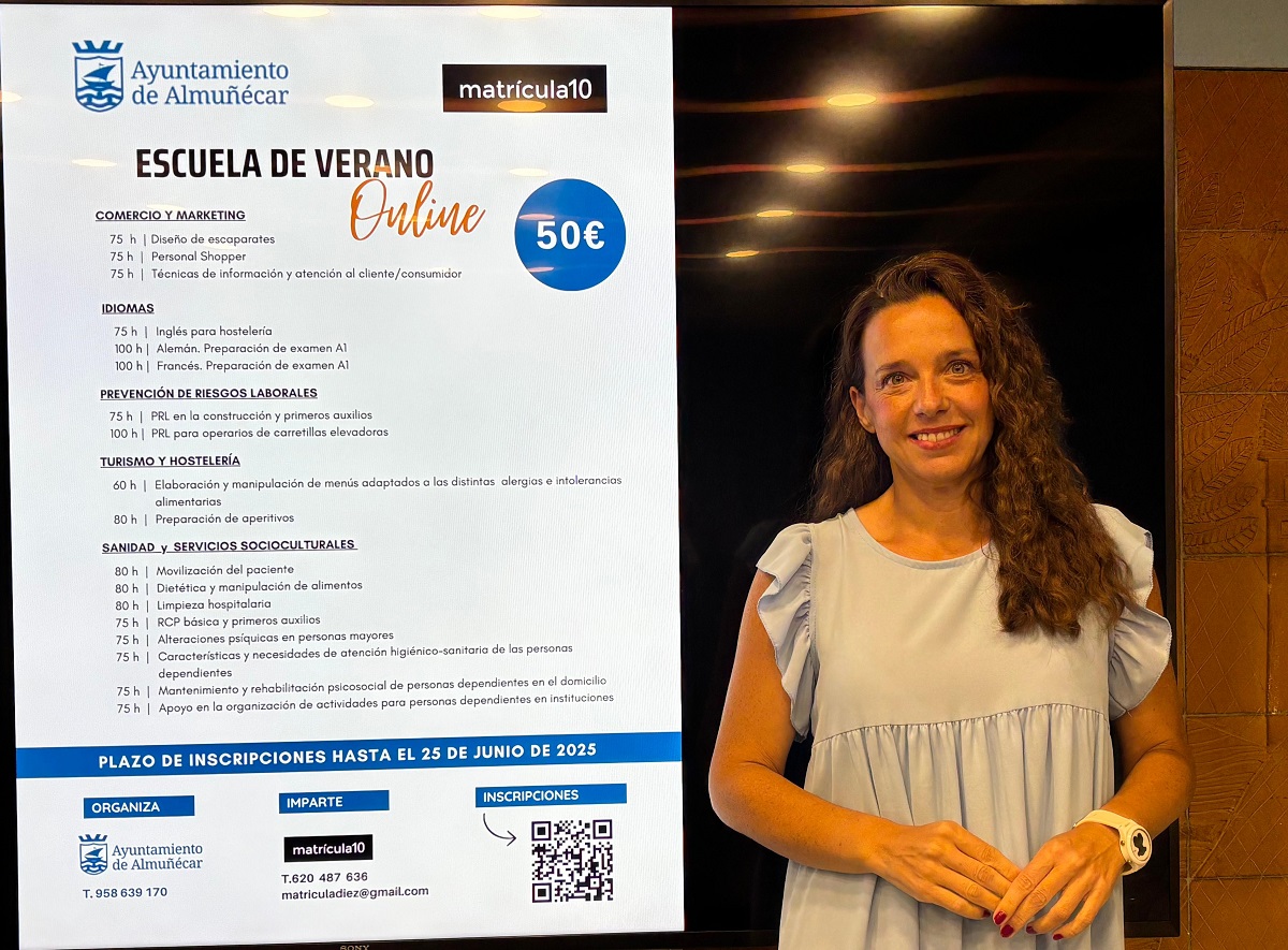 El Área de Fomento y Empleo del Ayuntamiento de Almuñécar pone en marcha la “Escuela de Verano Online” de formación, con la colaboración de la empresa Matrícula 10 “con el fin de fomentar una formación sin horarios, más cómoda y accesible, para compaginar con el periodo estival, y siempre con el principal objetivo de mejorar la empleabilidad de los vecinos del municipio y así facilitar su incorporación al mercado laboral.”, según la responsable municipal del Área de Fomento y Empleo, Beatriz González Orce.