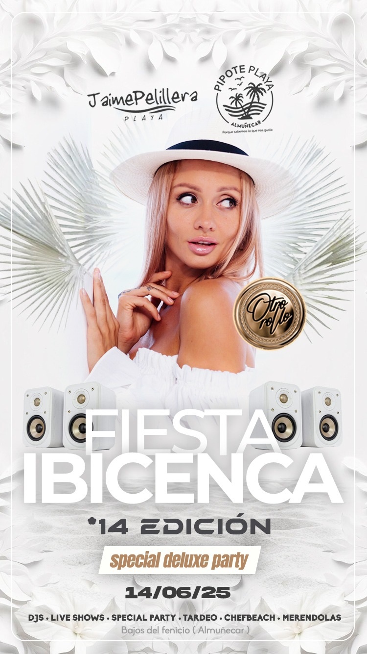 Como cada año Jaime Pelillera Pipote Playa preparan su entrada de verano con su party ibicenco, que este año será el próximo sábado 14 de junio. Una tarde noche que rememora a Ibiza, origen de la moda adlib y del fundamental blanco mediterráneo, pero que es esencialmente sexitana en la ubicación de este boulevard a pie de playa, con el mar de protagonista y como fondo los peñones de Almuñécar y todo ello incluyendo la utilización del blanco en objetos, decoración, ropa, etc.