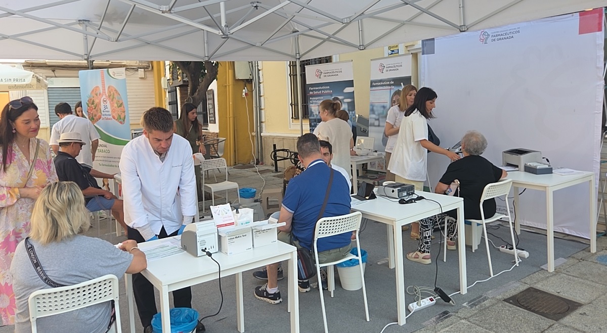 El Colegio de Farmacéuticos de Granada ha instalado la ‘Carpa de la Salud’ en la plaza del Ayuntamiento de Almuñécar para realizar, gratuitamente, valoraciones y mediciones farmacéuticas de niveles como retorno venoso, composición corporal, riesgo cardiovascular, osteoporosis, análisis de la piel, diabetes e incluso salud emocional.