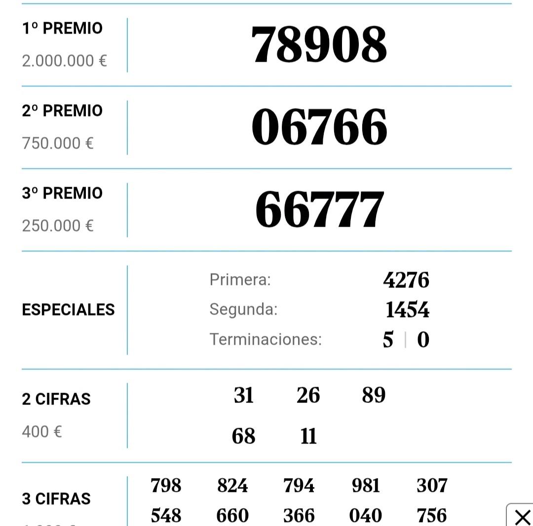 Segundo Premio de Lotería Nacional del SORTEO EXTRAORDINARIO DE «EL NIÑO» del 06 de enero de 2023