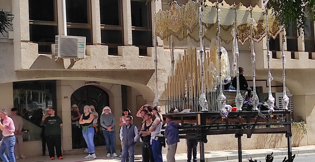 La expectación crece alrededor de la Iglesia de la Encarnación. Allí se concentra la multitud con una paciencia silenciosa. De pronto, las puertas se abren y aparece el primer trono. La maniobra para sacarlo es lenta, casi milimétrica. Las dimensiones del paso y la estrechez del templo obligan a los portadores a moverse con una precisión que el público observa con una mezcla de respeto y curiosidad. Cuando finalmente el trono pisa la calle, un aplauso espontáneo recorre la plaza. (pincha aquí para seguir horarios y recorridos)